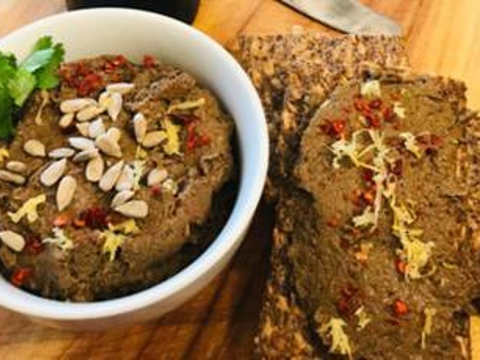 - Die Steine der Oliven entfernen und zusammen mit den Kapern, dem Bratgut, Keto Epi 2:1, getrockneten Tomaten, MCT Margarine 83 %, Koriander und Zitronenabrieb sowie den Gewürzen in einen Mixer geben und zu einer homogenen Maße pürieren.