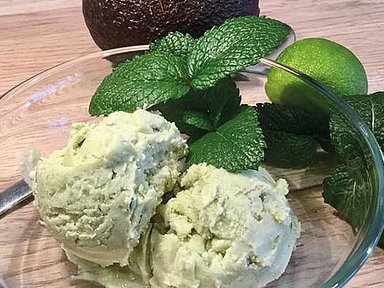 - Kokosmilch mit 1 Msp. * Bourbon Vanille und Puderzucker mit einem Rührgerät für 2 Minuten aufschlagen, Avocadomasse unterheben und in eine Eismaschine geben, bzw. für 4 Stunden in einen Tiefkühler geben und alle 30 Minuten mit einer Gabel cremig rühren.