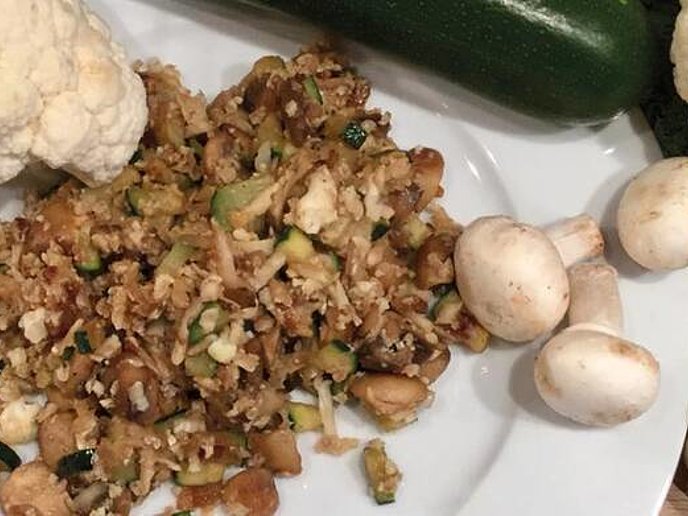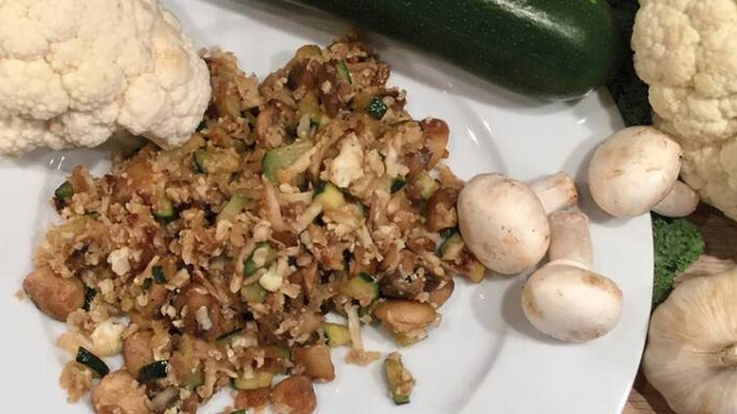 - Blumenkohl putzen und mit einer Reibe grob reiben, sodass der Blumenkohl eine reisähnliche Konsistenz erhält.