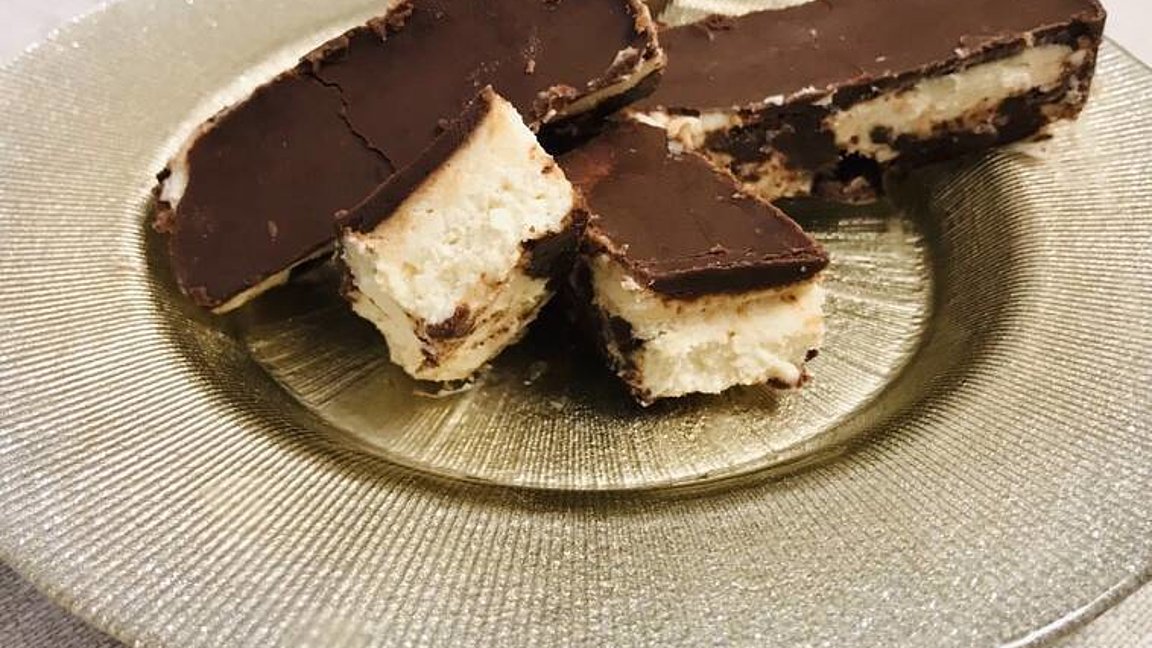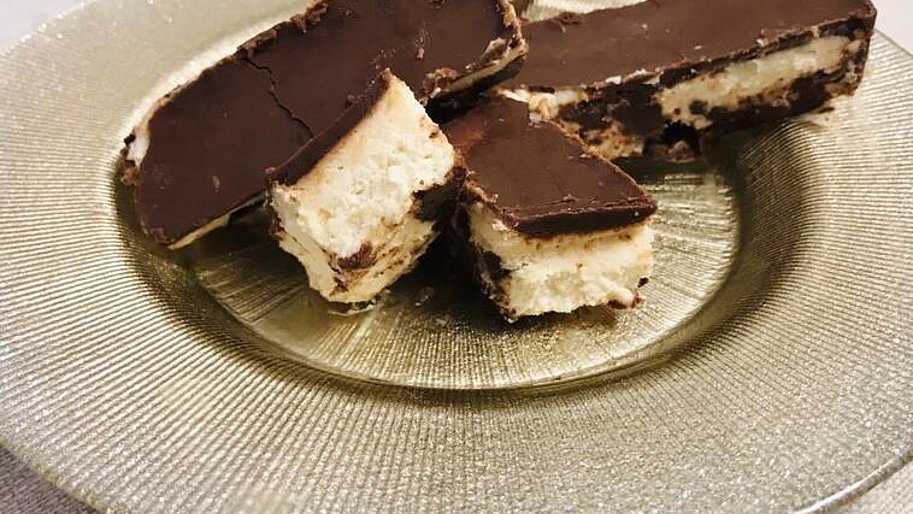 Tipp: Die einzelnen Riegel können sehr gut eingefroren werden und dann z.B. auch als Eisriegel serviert werden.