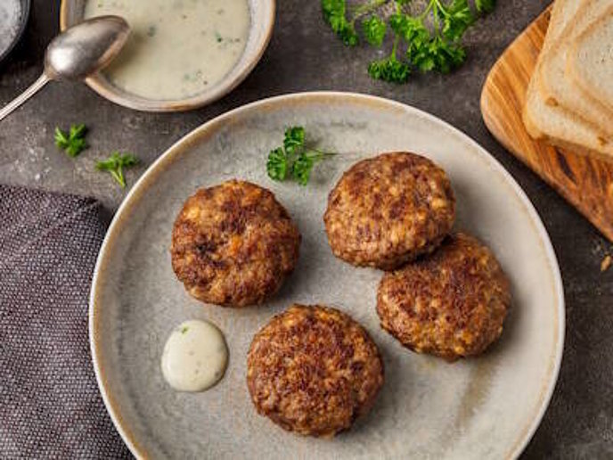 - MCT Cream mit frischen Kräutern verfeinern und zu den Frikadellen reichen.