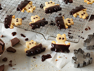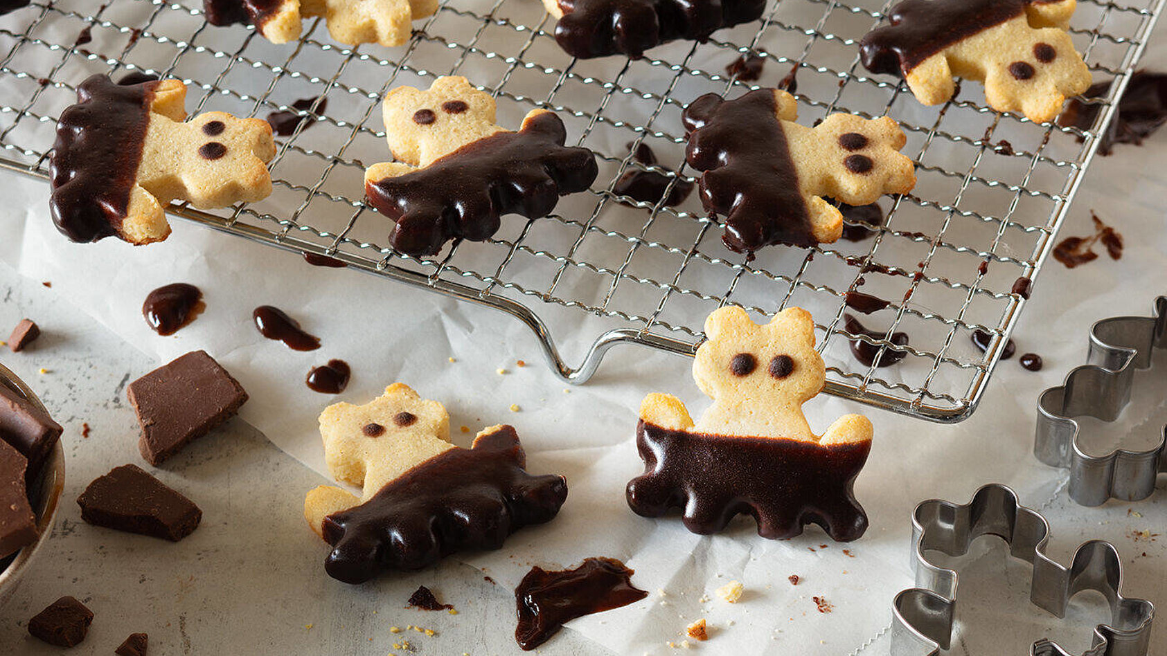 - Plätzchen nach Belieben mit der Schokoglasur verzieren.