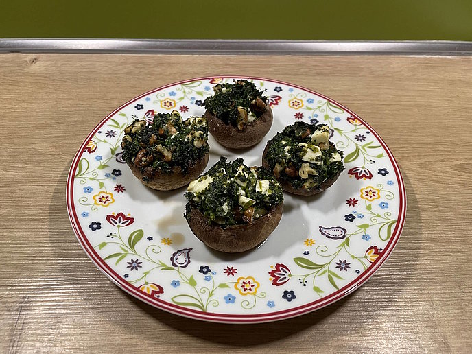 - Die Champignons mit der Masse füllen und für 15min im Ofen bei 180°C backen