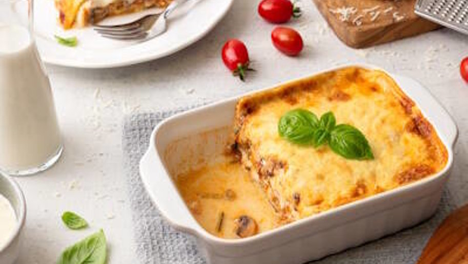 - Vorgang wiederholen und mit einer Schicht Zucchini abschließen. Restliche Bechamelsauce darüber gießen und mit Parmesan bestreuen.
