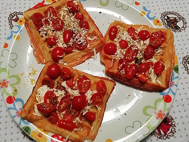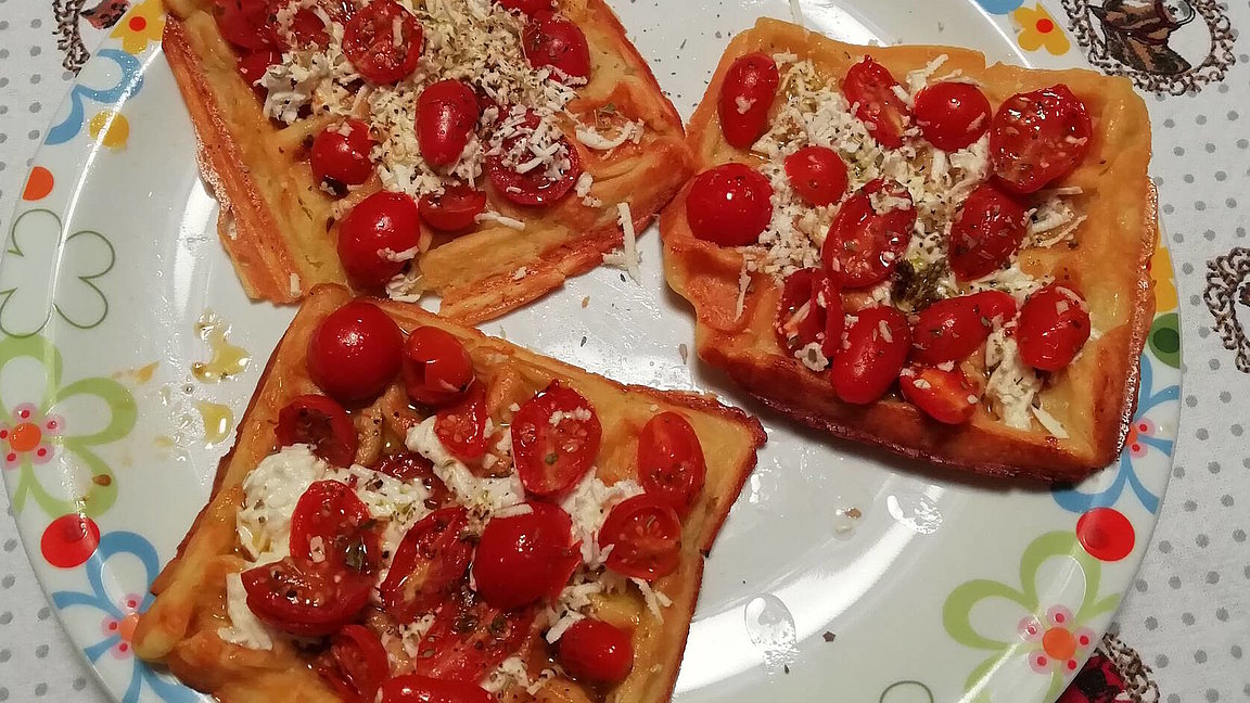 Herzhafte Waffeln mit Feta und Tomaten