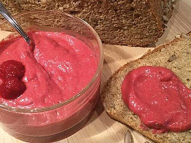 - Himbeeren, Chiasamen, MCT Öl 100 %, Stevia-Erythrit Puderzucker und nach Geschmack Vanille-Aroma in einem hohen Gefäß pürieren und für mindestens eine Stunde im Kühlschrank andicken lassen.