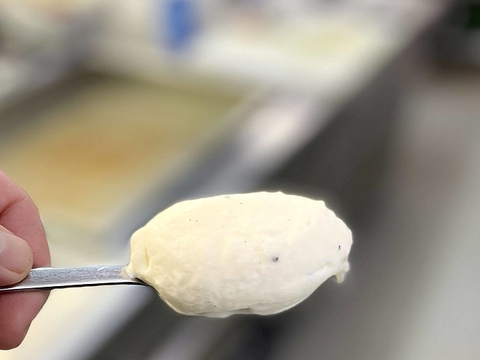 - Die Mischung in einer Eismaschine nach Herstellerangaben gefrieren lassen.