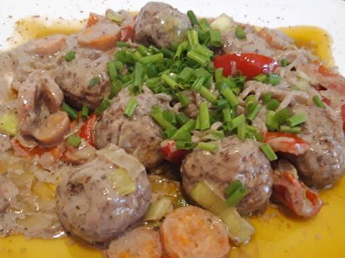 | 100 g | Hackbällchen, vegetarisch 9,1 % Fett (z.B. Garden Gourmet) |