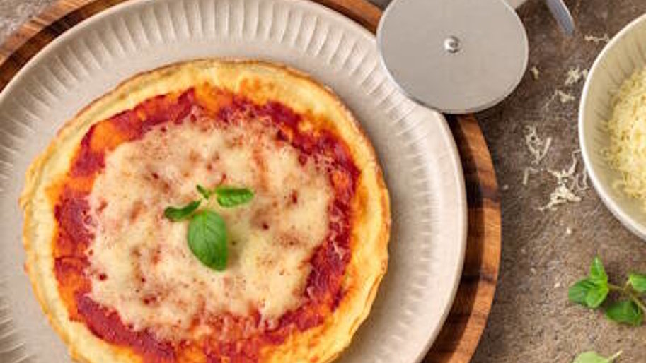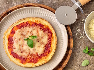 - Rapsöl in einer beschichteten Pfanne erwärmen, den Teig hineingeben und flach streichen zu einem Pizzateig. Von beiden Seiten goldbraun backen.