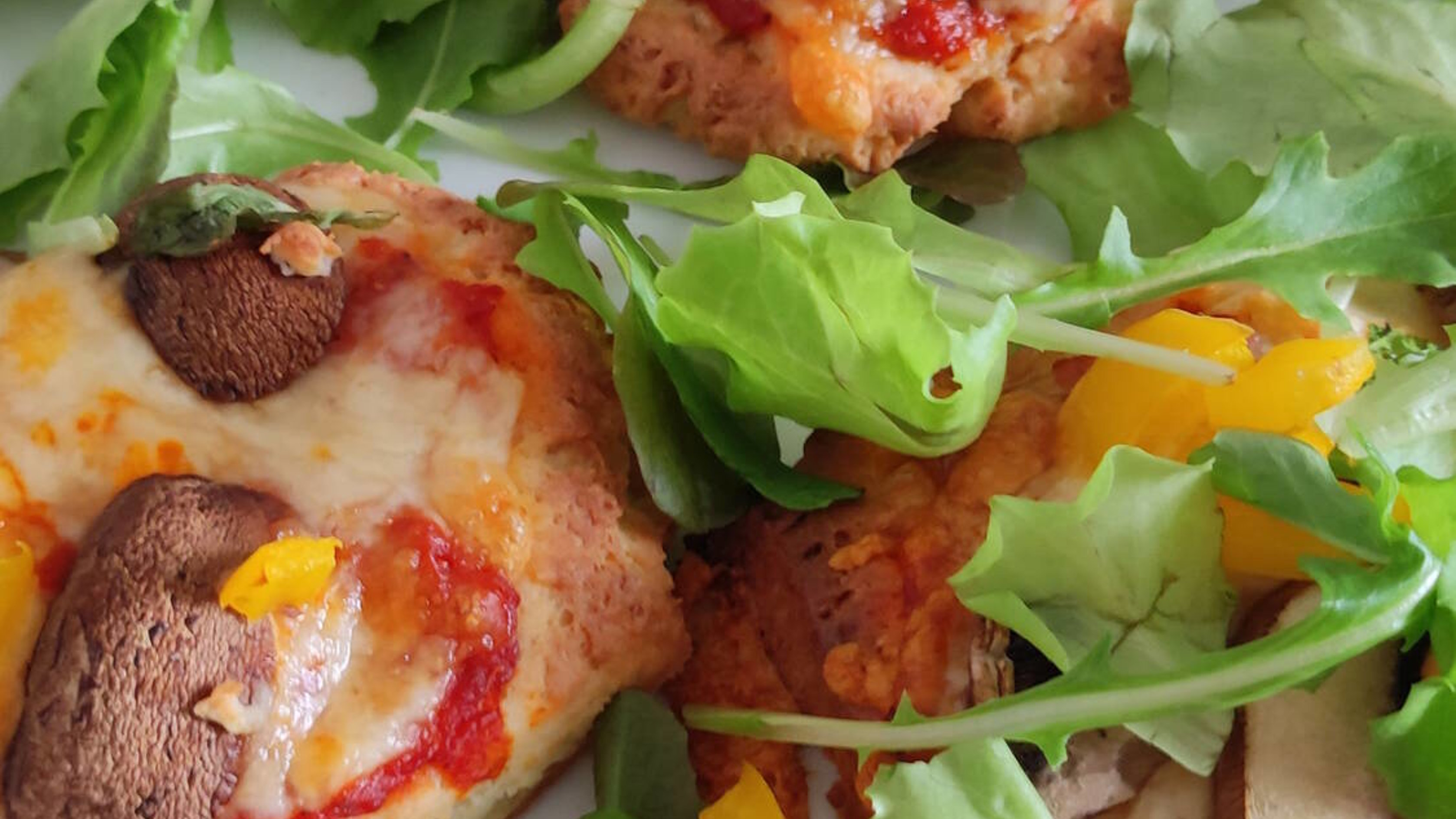 - Für den Teig Keto Baking Mix, 5 Beutel* MCT Fiber, Xanthan, Backpulver und Erythrit in einer Schüssel vermengen. Anschließend Wasser, Olivenöl, Salz, Sojajoghurt und Essig hinzugeben und mit dem Knethaken zu einem gleichmäßigen Teig verkneten. Den fertigen Teig in 8 gleichgroße Stücke teilen und zu Fladen formen.