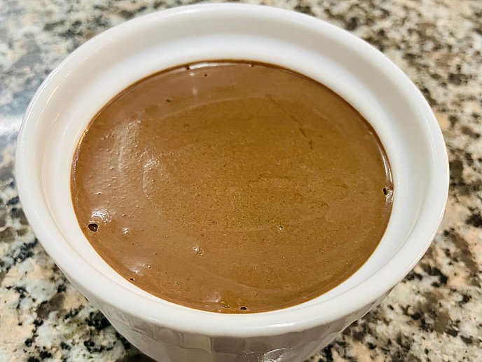 - Kokosmilch, Kakao, Erythrit, Zimt, Keto Biota und MCT Öl 100 % hinzugeben.