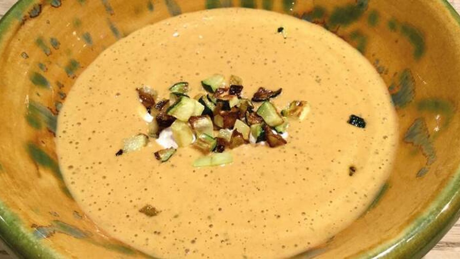 - Zu dem restlichen Gemüse die Mandelmilch sowie Tomato MCT Cream geben und mit einem Pürierstab zu einer cremigen Suppe pürieren.