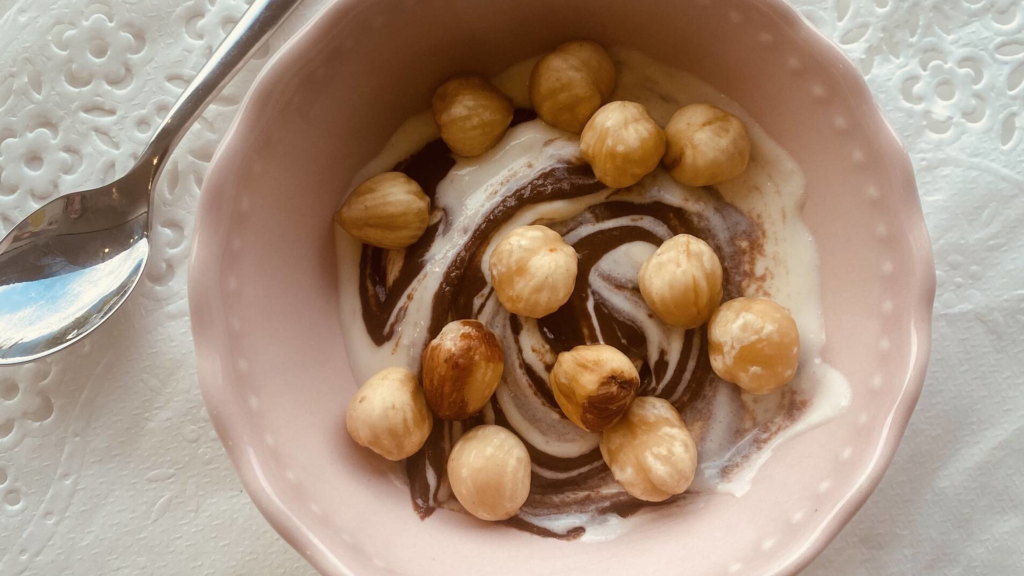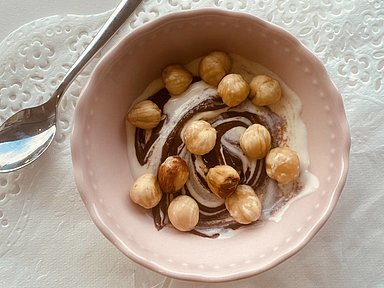 Frullato allo yogurt con granella di noci e crema di cioccolato