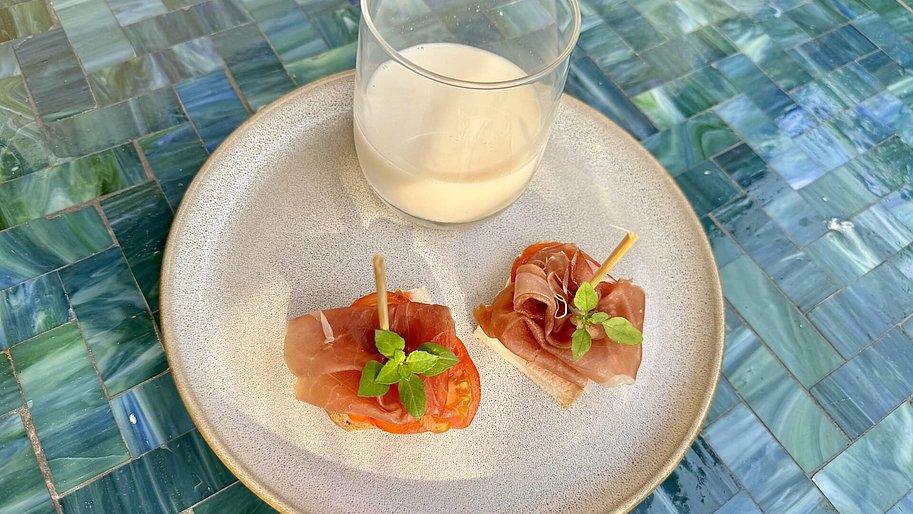 - Completa con una fetta di prosciutto crudo.