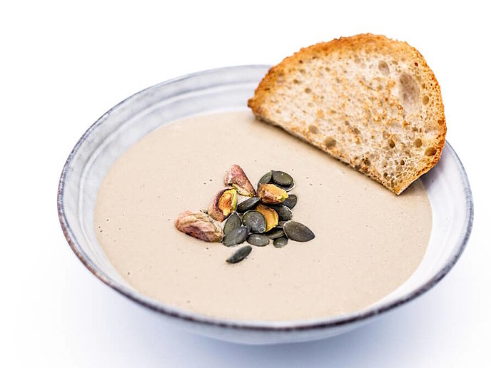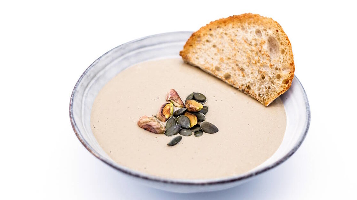 Vellutata di sedano rapa con avocado e pistacchi